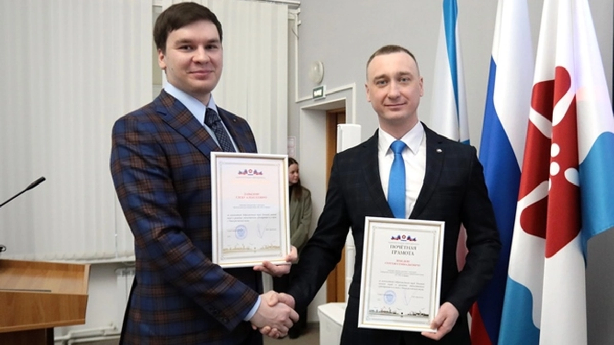 16 февраля – ИА SM.News. Инженерам проектно-конструкторского бюро «Севмаш» и управления защиты кораблей и судов по физическим полям Глебу Давыдову и Сергею Лебедеву вручены Благодарность и Почетная грамота от главы Северодвинска. Игорь Арсентьев отметил заслуги работников предприятия в научно-исследовательской деятельности и большой личный вклад в развитие научного потенциала города.